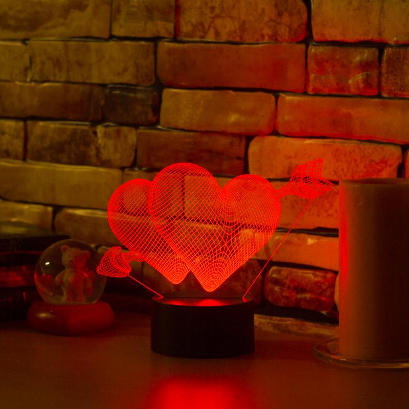 Купить 3D светильник Два сердца в интернет-магазине в Уфе
