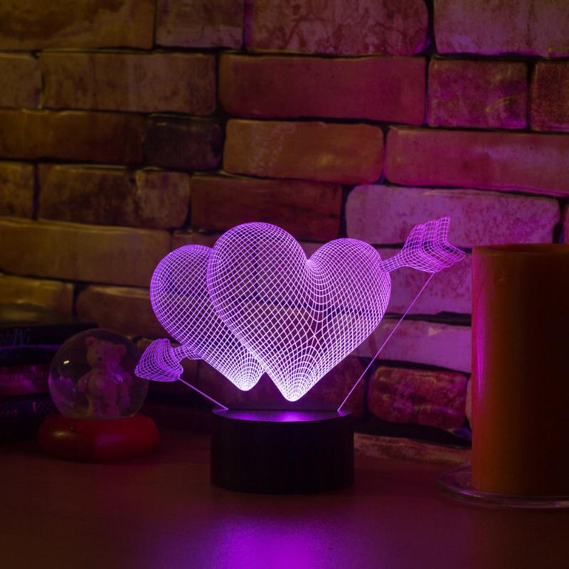 • 3D светильник Два сердца имеет превосходный вид в темноте