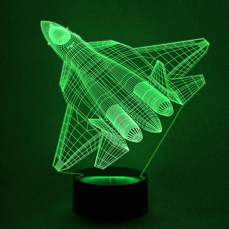• 3D светильник Истребитель Су - 57 с поздравлением имеет превосходный вид в темноте