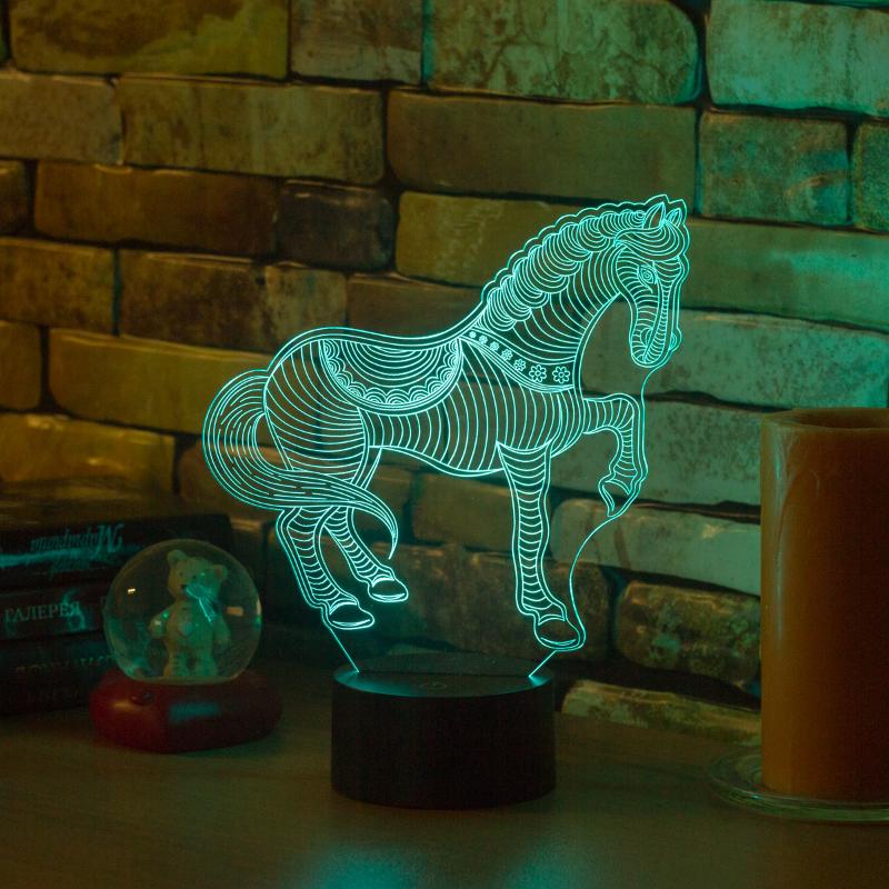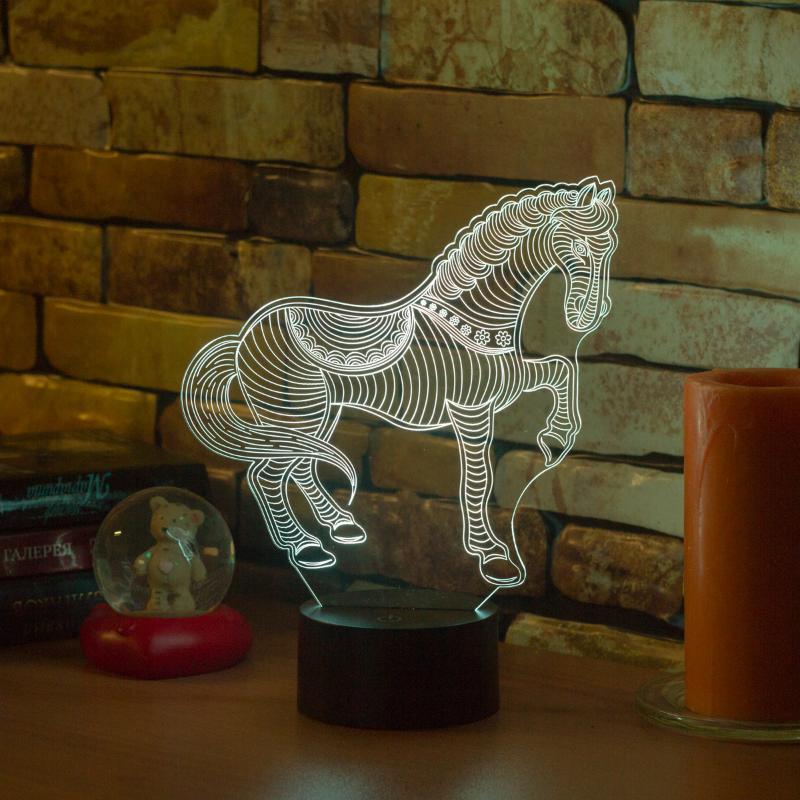 • 3D светильник Лошадка имеет превосходный вид в темноте
