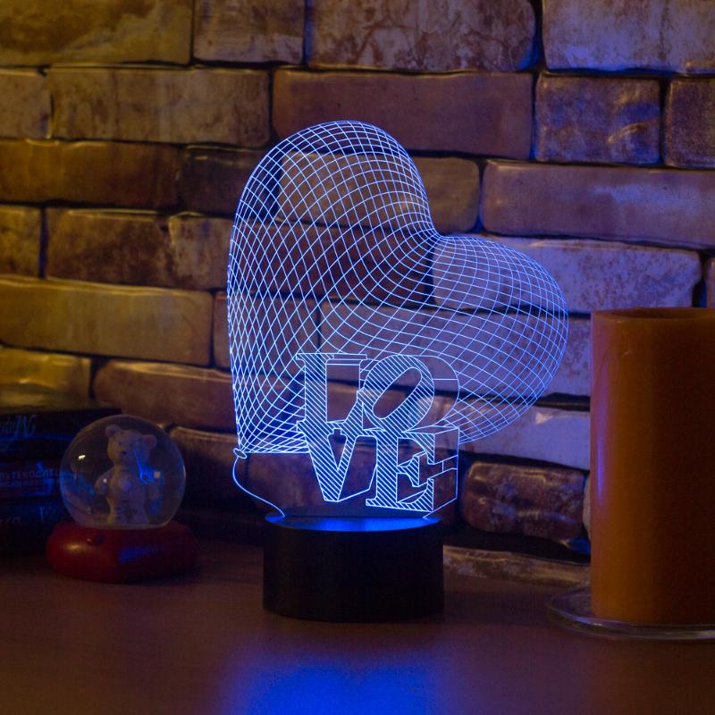 Купить 3D светильник Сердце Love в интернет-магазине в Уфе