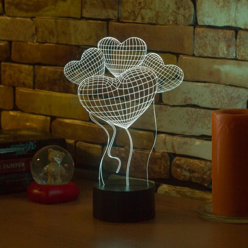 Купить 3D светильник Шары Сердца в интернет-магазине в Уфе