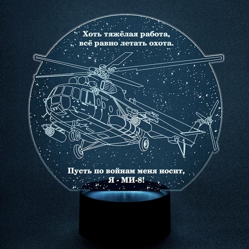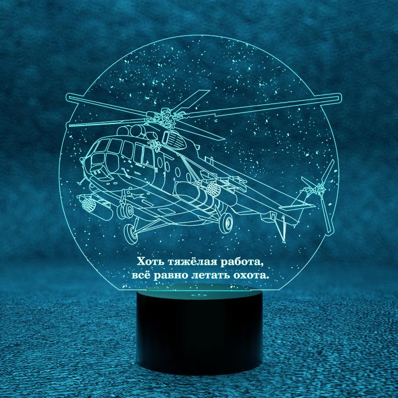 Купить 3D светильник Вертолет с вашим текстом в интернет-магазине в Уфе