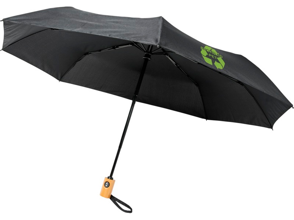 Автоматически открывающийся/закрывающийся зонт Bo из переработанного ПЭТ-пластика. Куполом из эпонж полиэстера и переработанного ПЭТ-пластика. Прочный металлический стержень, высококачественная рама со спицами из стекловолокна, обеспечивающая максимальную гибкость в ветреную погоду. Поставляется с чехлом и может легко поместиться в сумку или рюкзак для удобного ношения.