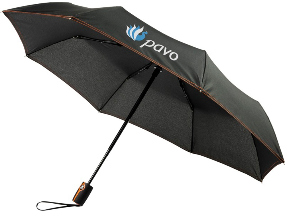 21-дюймовый складной автоматически открывающийся/закрывающийся зонт Stark-mini с куполом из эпонж полиэстера. Прочный металлический стержень, высококачественная рама со спицами из стекловолокна, обеспечивающая максимальную гибкость в ветреную погоду. Поставляется с чехлом и может легко поместиться в сумку или рюкзак для удобного ношения. На ручке с мягким матовым покрытием присутствуют цветные элементы, а части купола и чехла прошиты.