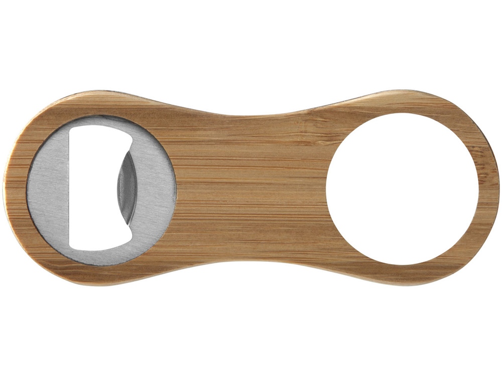 Бамбуковая открывалка для бутылок Barron. Открывалка для бутылок, изготовленная из прочного бамбукового материала с логотипом по середине. Бамбук и нержавеющая сталь.