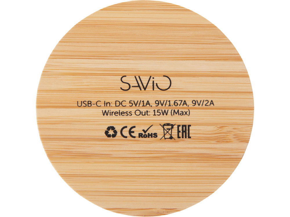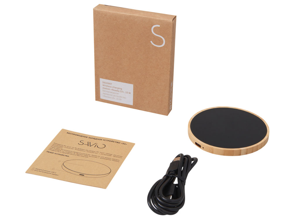 Заряжайте устройства с элегантностью и заботой о планете — с беспроводным зарядным устройством на 15 Вт, выполненным из натурального бамбука и переработанного ABS-пластика. Это не просто функциональный гаджет, а стильный элемент интерьера, который органично впишется в ваш дом, офис или коворкинг. Благодаря поддержке быстрой беспроводной зарядки до 15 Вт, ваш смартфон восполняет энергию без лишних проводов и суеты. А встроенная белая подсветка логотипа добавляет изюминку: ваш бренд или инициалы мягко светятся при зарядке, создавая атмосферу уюта и индивидуальности. Идеальный выбор для тех, кто ценит экологичность, технологии и эстетику. - Быстрая беспроводная зарядка — мощность до 15 Вт - Экологичный дизайн — корпус из натурального бамбука + переработанный ABS-пластик - Логотип с подсветкой — ваш бренд мягко светится при зарядке, привлекая внимание и вызывая доверие - Стильный элемент интерьера — зарядка, которая украшает рабочий стол или тумбочку - Идеальный корпоративный подарок — технологично, экологично, запоминающе — с вашим логотипом
