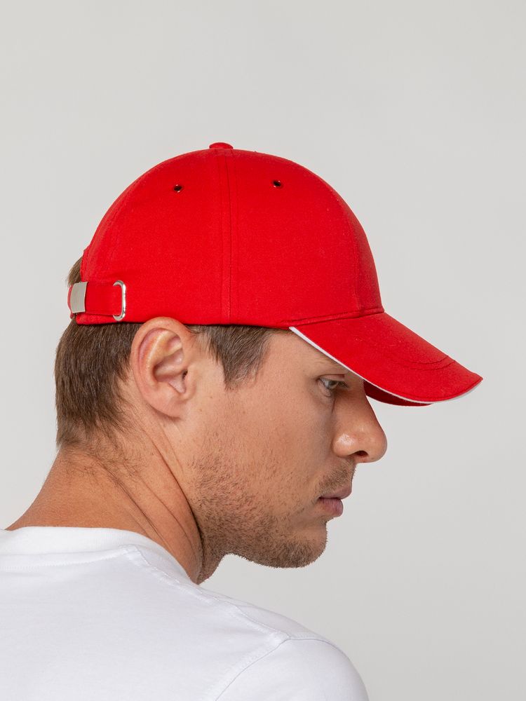 Бейсболка Canopy, красная с белым кантом купить оптом и в розницу с нанесением логотипа в Уфе
