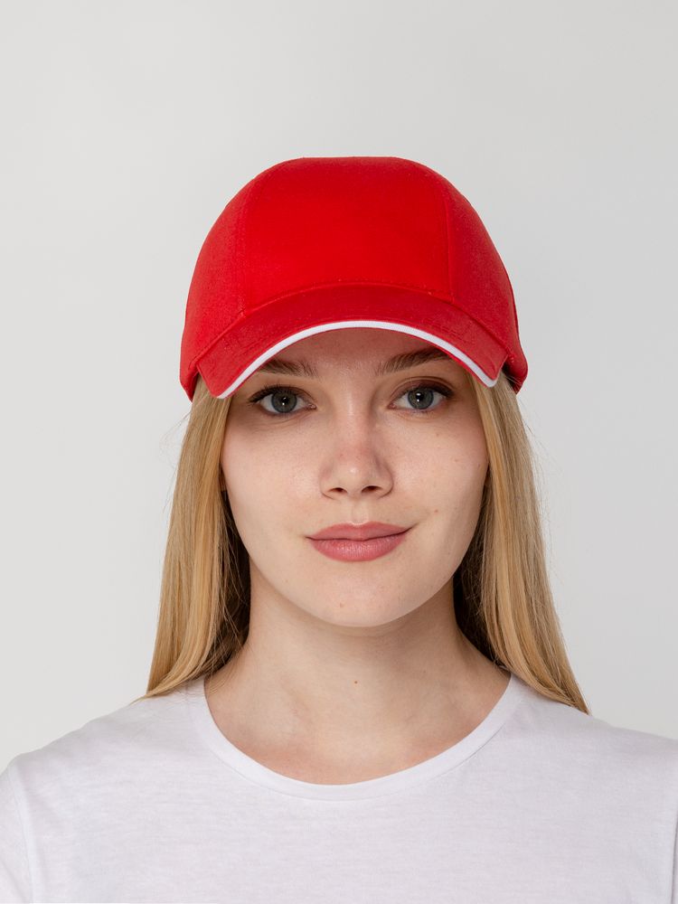 Бейсболка Canopy, красная с белым кантом