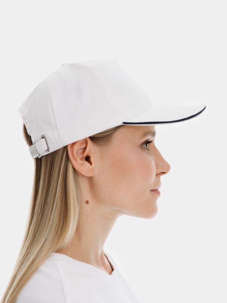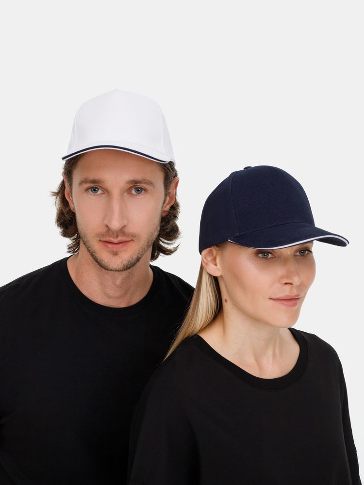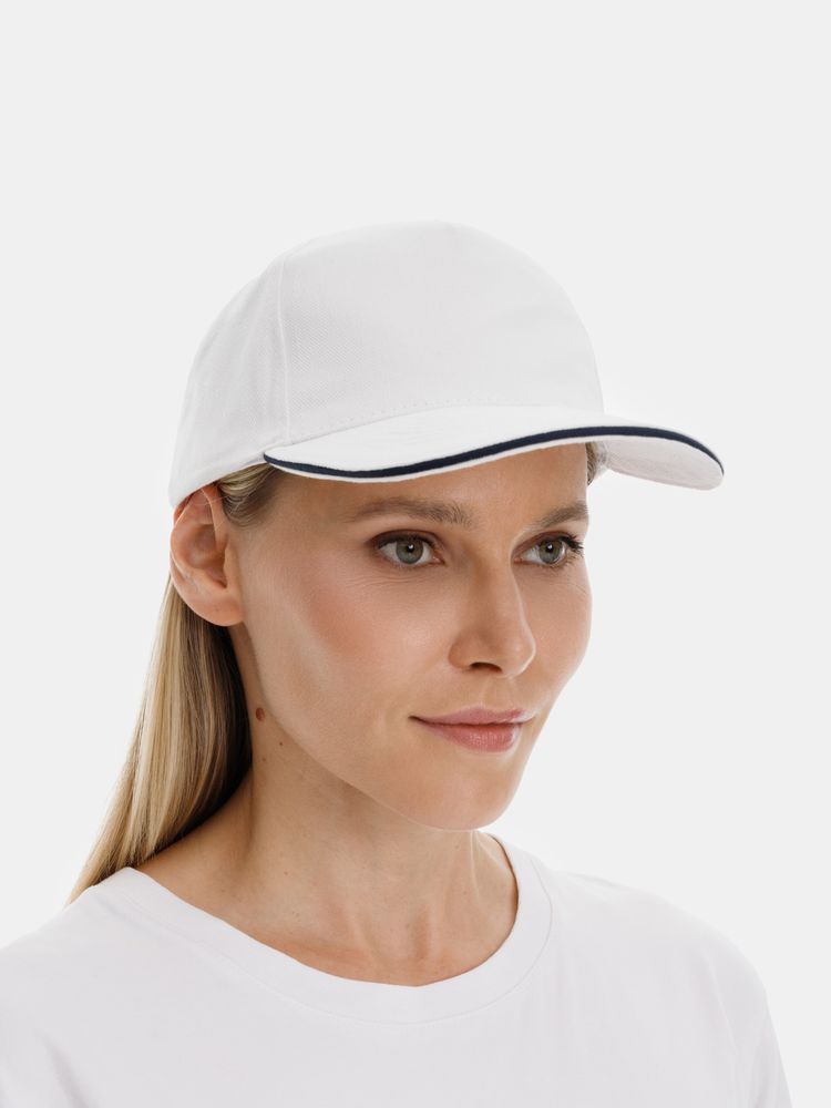 Бейсболка Classic 2.0, белая с темно-синим кантом