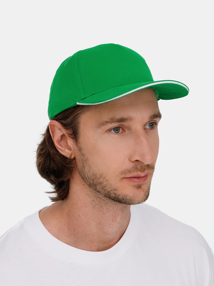 Бейсболка Classic 2.0, ярко-зеленая с белым кантом купить оптом и в розницу с нанесением логотипа в Уфе