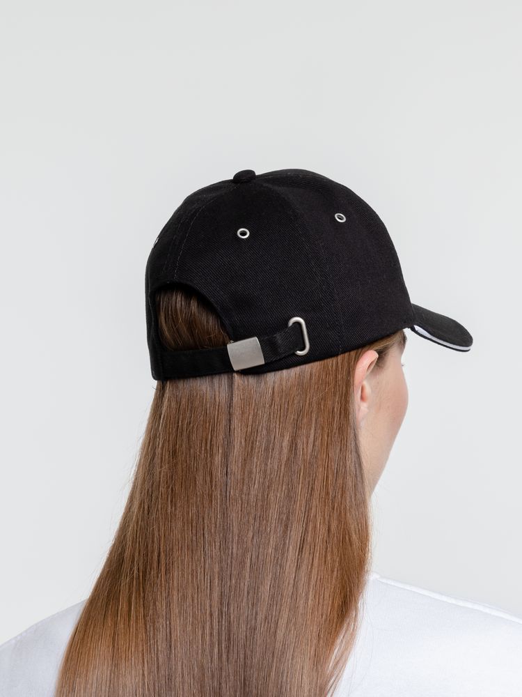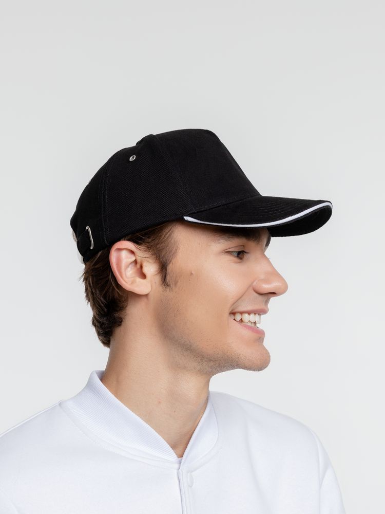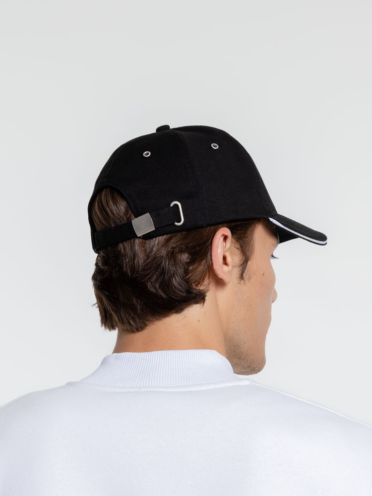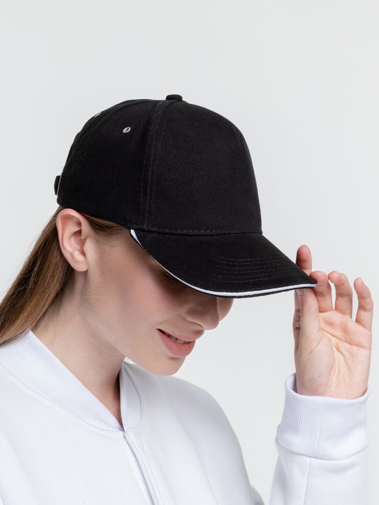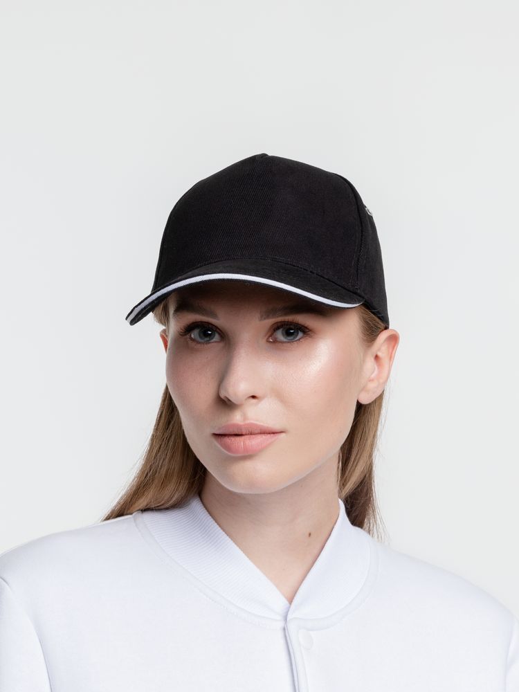 Бейсболка Classic, черная с белым кантом купить оптом и в розницу с нанесением логотипа в Уфе