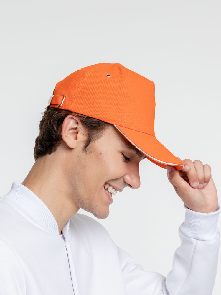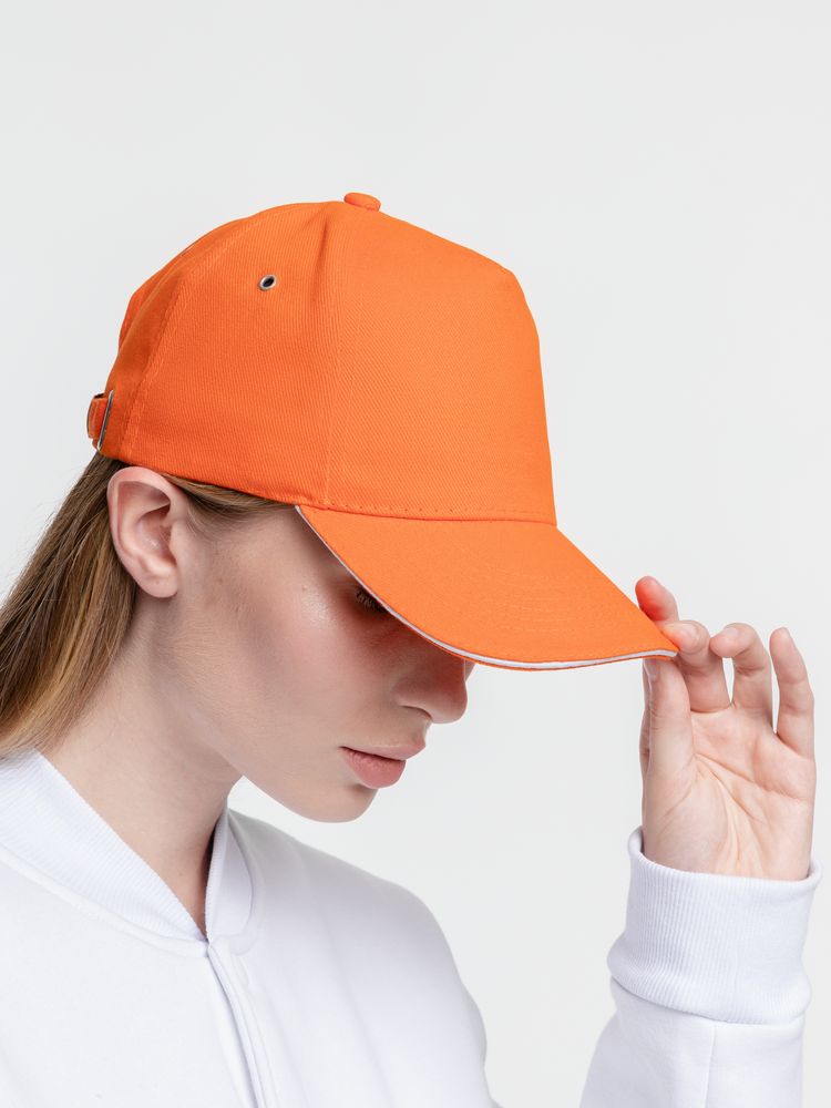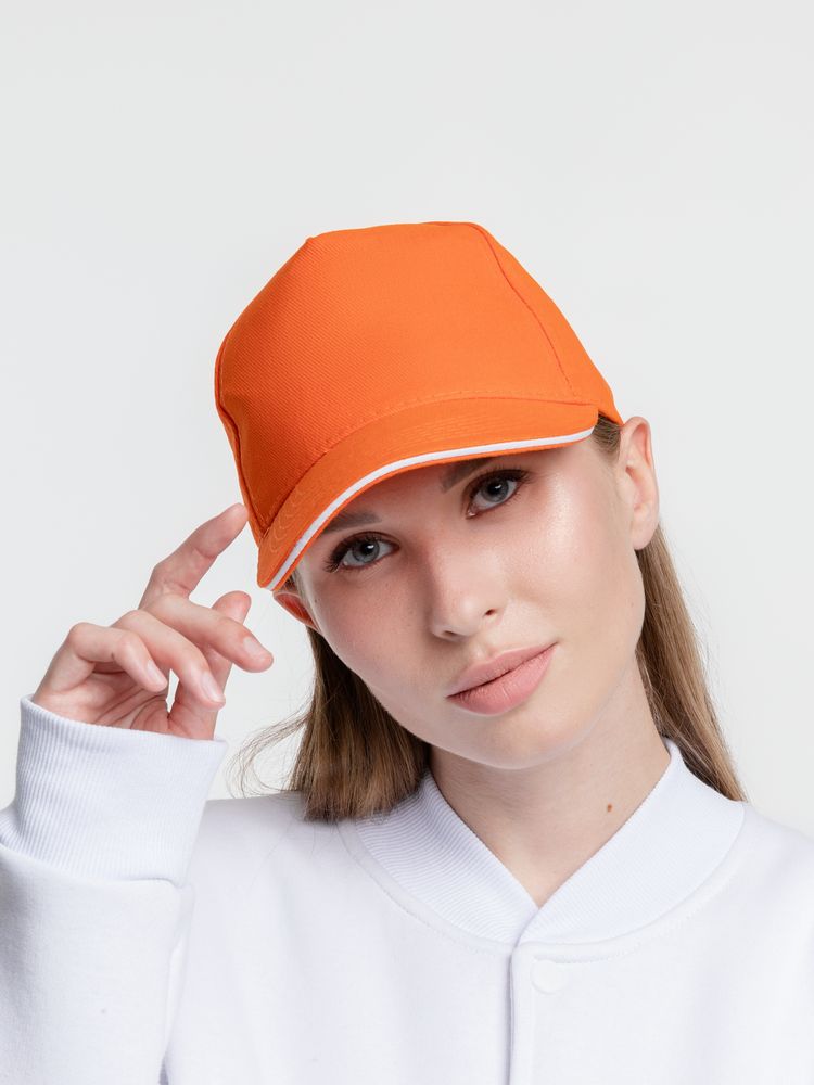 Бейсболка Classic, оранжевая с белым кантом