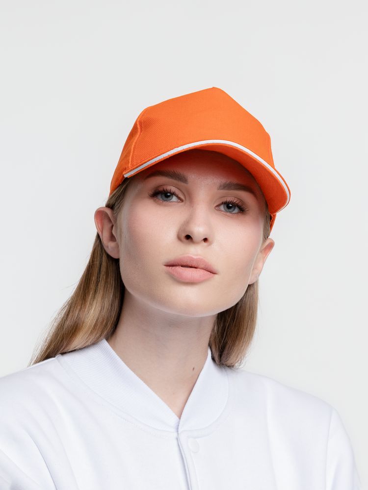 Бейсболка Classic, оранжевая с белым кантом купить оптом и в розницу с нанесением логотипа в Уфе