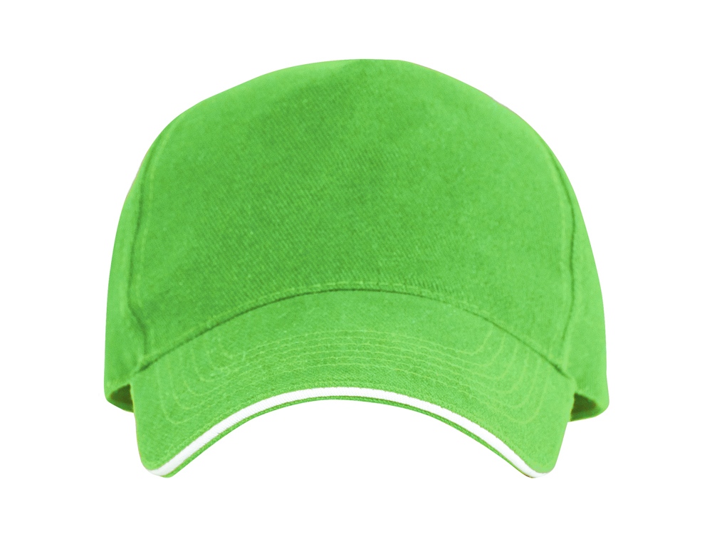 Бейсболка из 5 панелей с контрастным сэндвичем. Четыре вышитых вентиляционных люверса. Застежка на липучку.