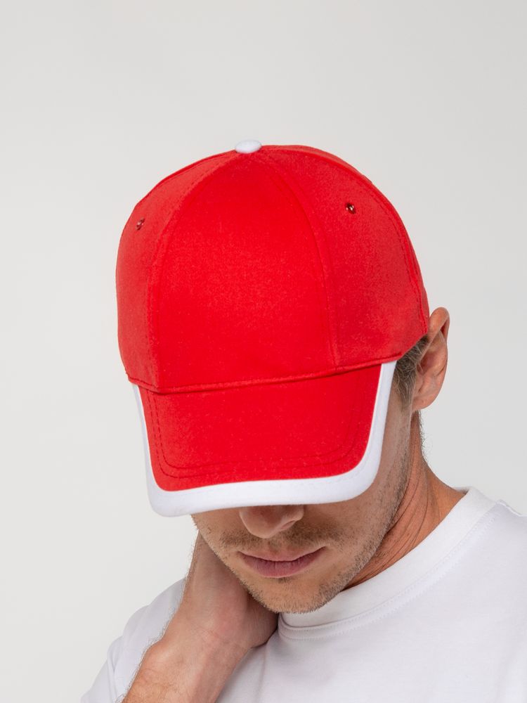 Бейсболка Honor, красная с белым кантом купить оптом и в розницу с нанесением логотипа в Уфе