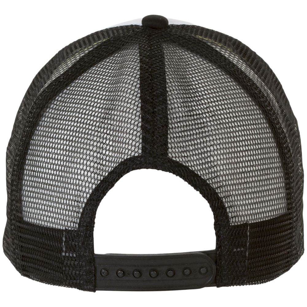 Бейсболка с 5 клиньями из сетки. Поролон в переднем клине (5 мм) и козырьке (3 мм). Регулируемая пластиковая застежка.