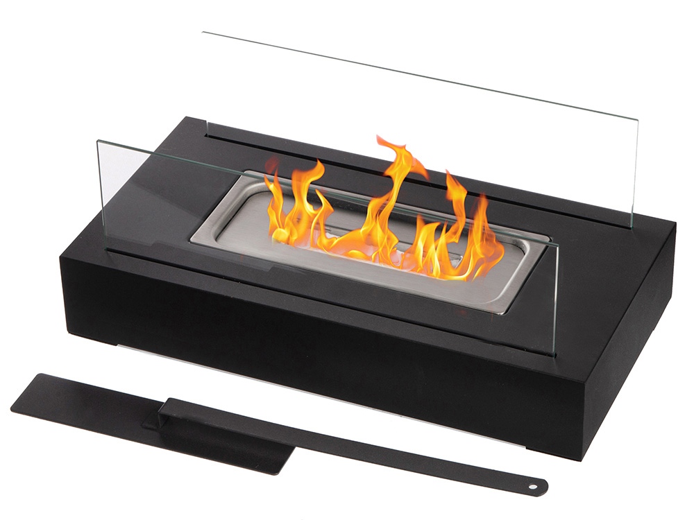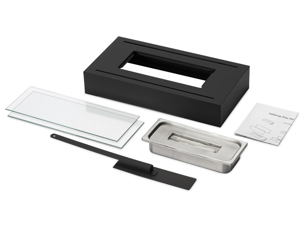 Комплектность металлическая база, стеклянные стенки- 2шт, емкость для топлива, заглушка для тушения пламени, керамическая вата, инструкция по применению