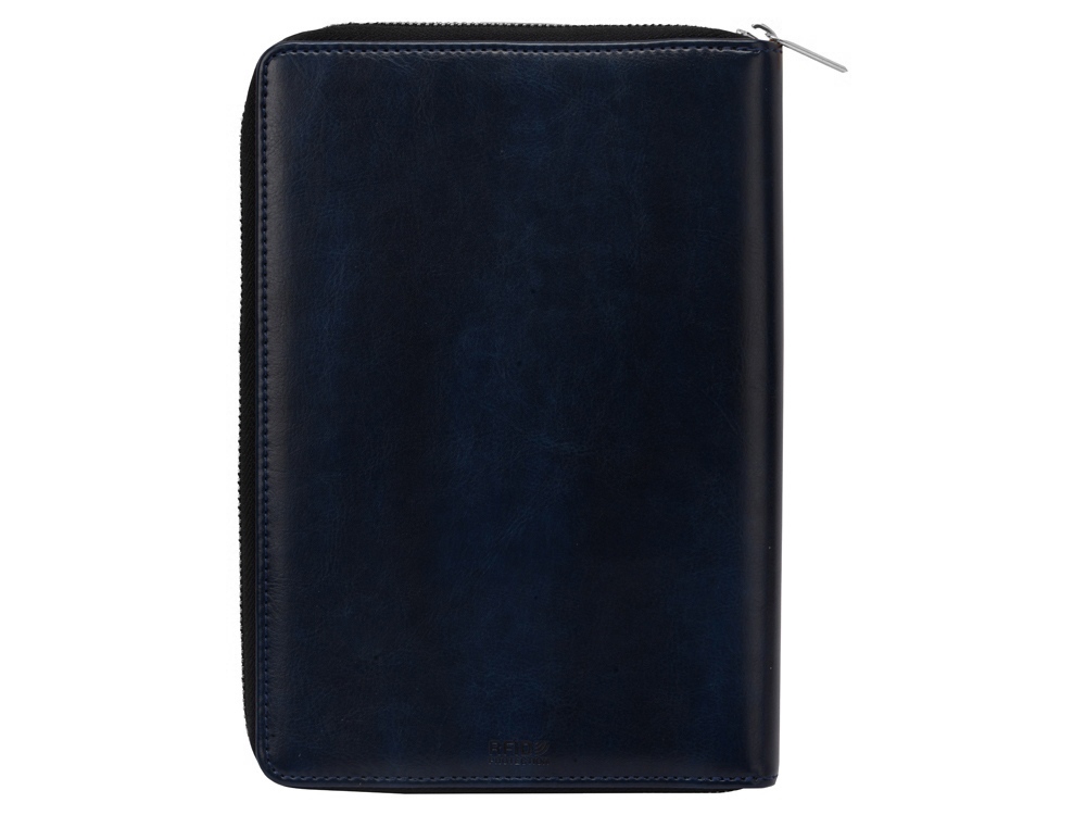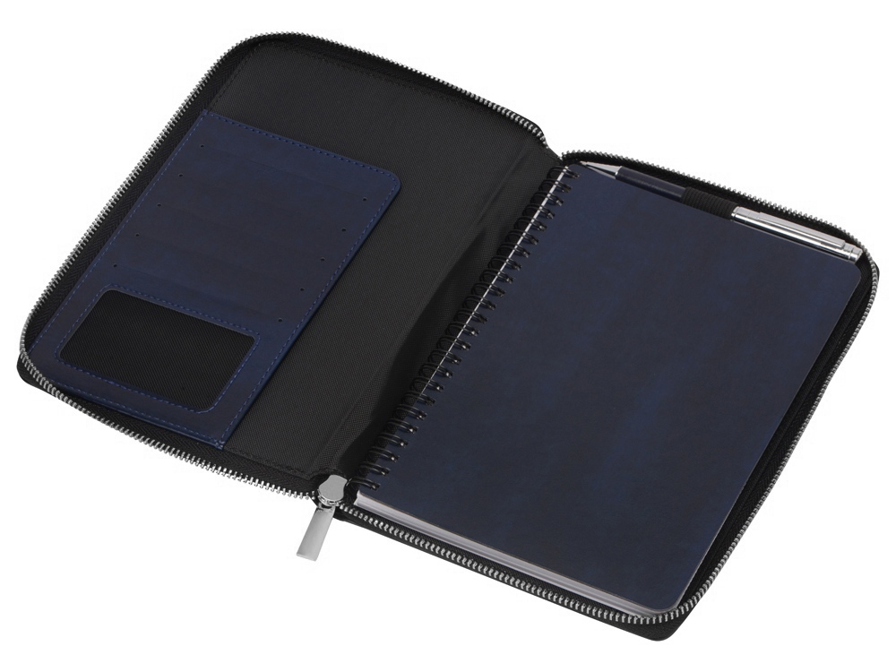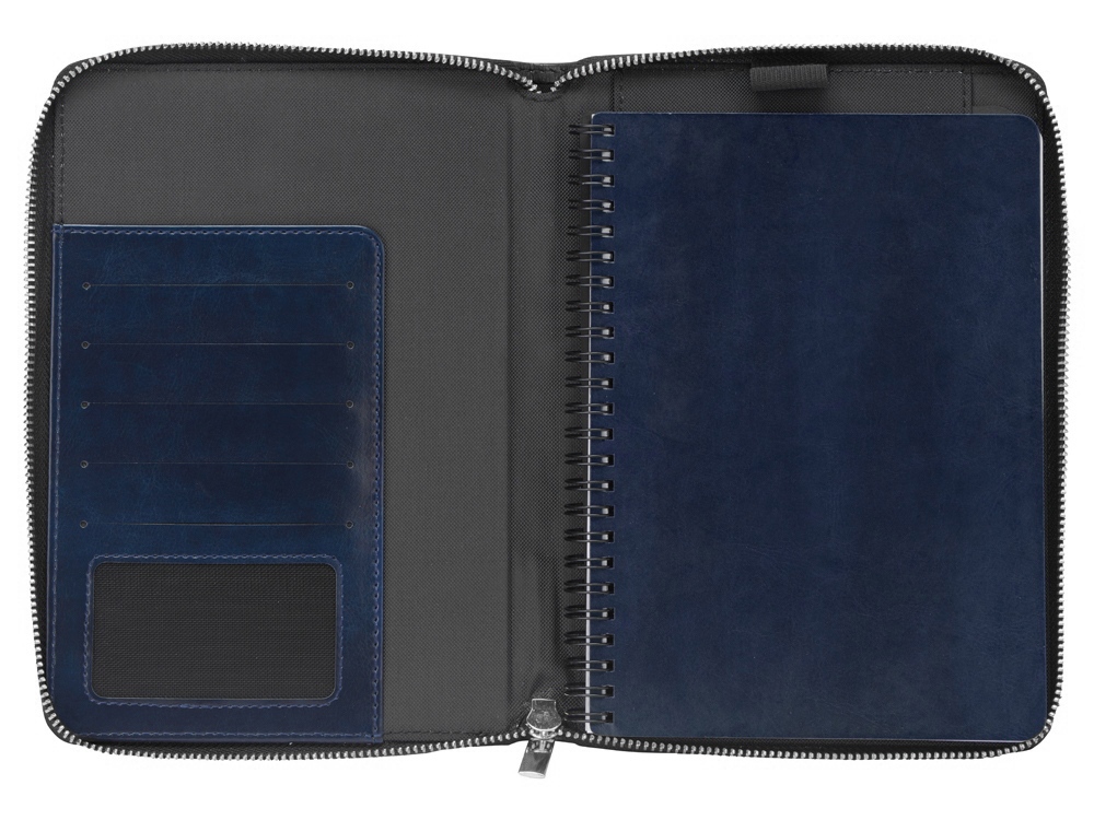 Бизнес блокнот Fabrizio состоит из пенала на молнии выполненного из искусственной кожи, и сменной тетради на 80 листов на кольцах с перфорированными линованными листами белого цвета. Блокнот снабжен 5 отделениями для карт и RFID защитой, которая охраняет вашу личную и финансовую информацию от мошенников. Внутри блокнота есть петля для ручки в тон (ручка в комплект не входит).