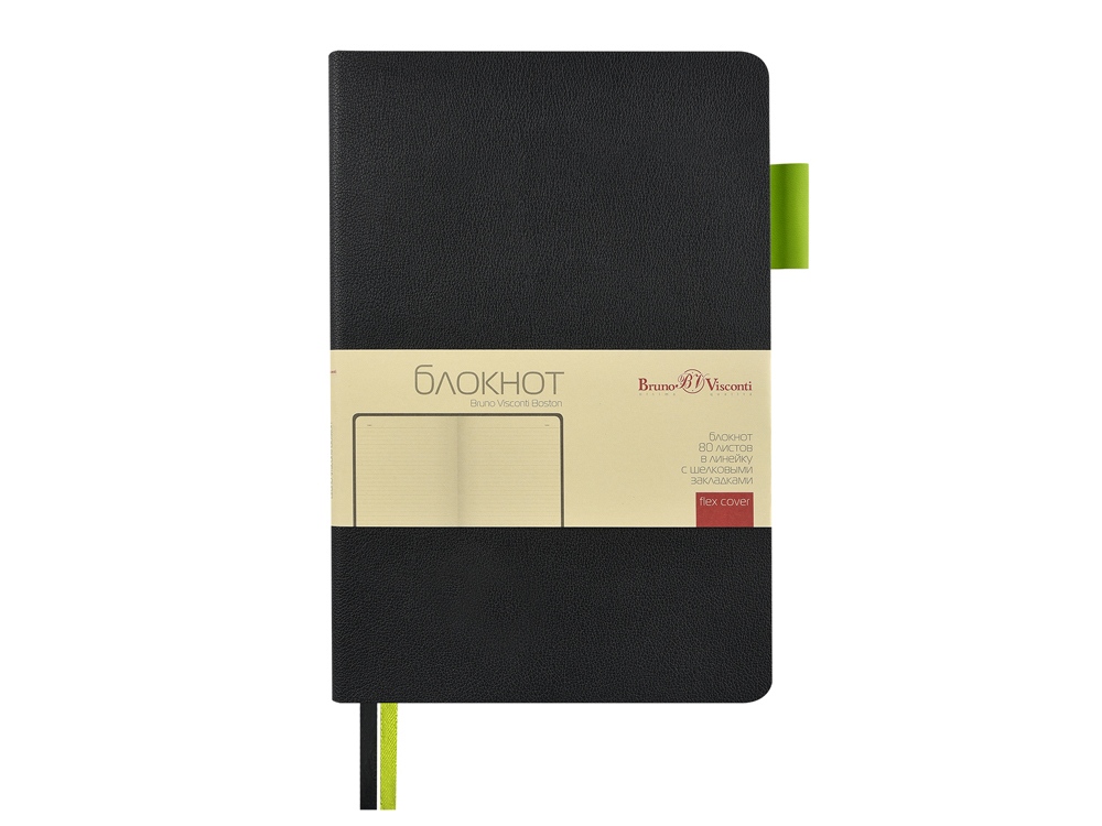 Серия офисных блокнотов Boston от Bruno Visconti формата А5 - функциональный бизнес-аксессуар для ведения рабочих и личных записей. В нем нет ничего лишнего, но, благодаря высококачественному переплетному материалу из экокожи и тактильно приятному покрытию Soft Touch, он выглядит презентабельно. Гибкая (flex) обложка с углами закругленной формы, два ляссе в цвет обложки и среза и петля для ручки наделяют блокнот практичностью. 80 листов блока в серую линовку помогают вести записи четко и аккуратно. Блок изготовлен из бежевой бумаги плотностью 70 кв/м.