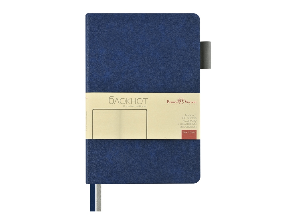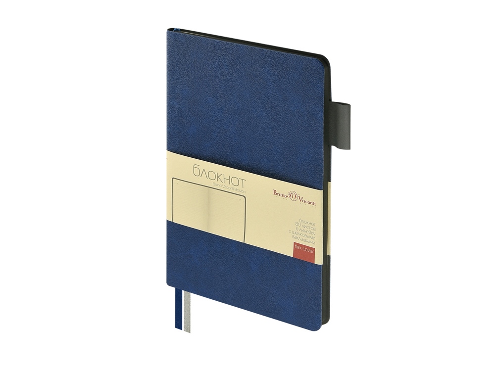 Серия офисных блокнотов Boston от Bruno Visconti формата А5 - функциональный бизнес-аксессуар для ведения рабочих и личных записей. В нем нет ничего лишнего, но, благодаря высококачественному переплетному материалу из экокожи и тактильно приятному покрытию Soft Touch, он выглядит презентабельно. Гибкая (flex) обложка с углами закругленной формы, два ляссе в цвет обложки и среза и петля для ручки наделяют блокнот практичностью. 80 листов блока в серую линовку помогают вести записи четко и аккуратно. Блок изготовлен из бежевой бумаги плотностью 70 кв/м.
