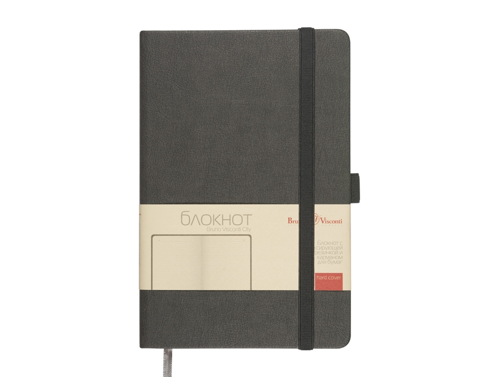 Базовая серия офисных блокнотов City от Bruno Visconti формата А5 - функциональный бизнес-аксессуар для ведения рабочих и личных записей. В нем нет ничего лишнего, но, благодаря высококачественному переплетному материалу из экокожи, он выглядит презентабельно. Твердая обложка с углами закругленной формы, фиксирующая резинка и ляссе в цвет обложки, петля для ручки и картонный карман для бумаги на внутренней стороне обложки наделяют блокнот практичностью. 80 листов блока в серую линовку помогают вести записи четко и аккуратно. Блок изготовлен из бежевой бумаги плотностью 70 кв/м.