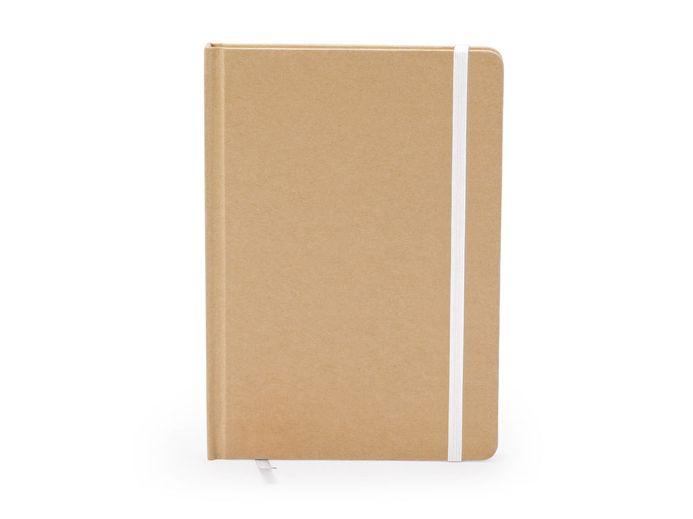Блокнот формата А5. Твердая обложка из переработанного картона. Закладка и цветная резинка. 100 простых листов.