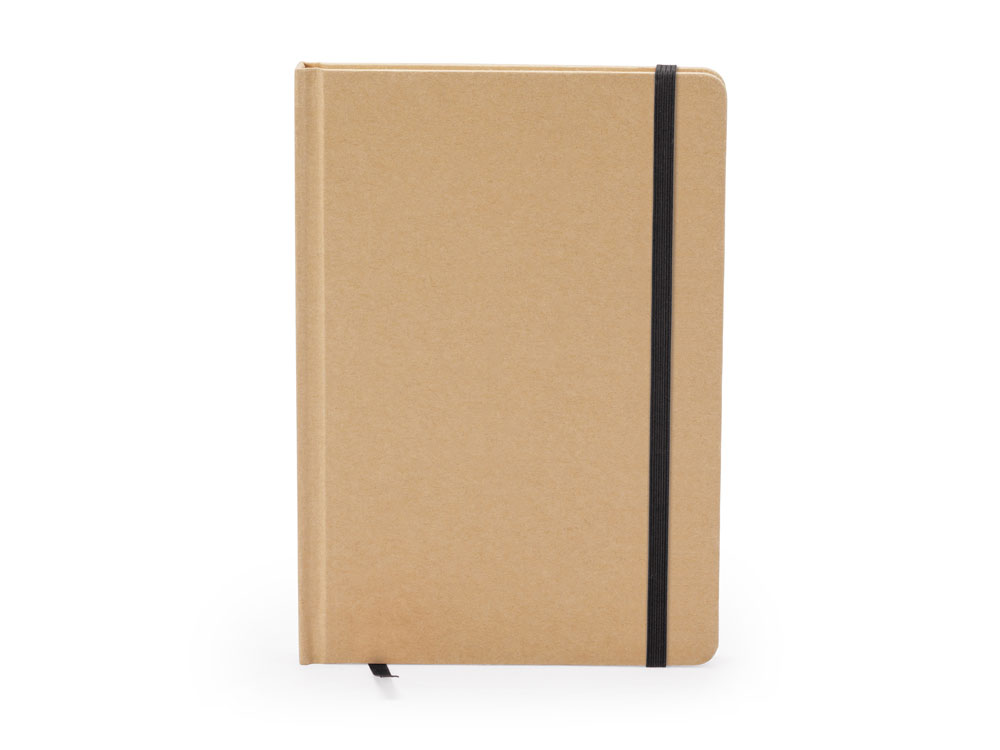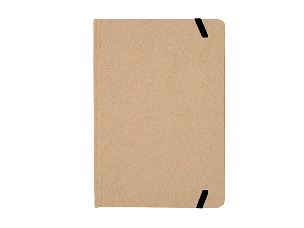 Блокнот формата А5. Твердая обложка из переработанного картона. Закладка и цветная резинка. 100 простых листов.