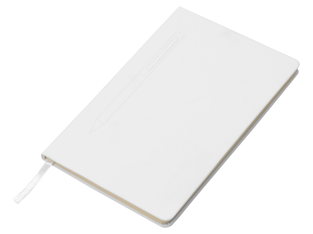 Блокнот формата А5 в твердой обложке со скруглёнными углами и блоком в линейку на 80 листов. Благодаря скрытой магнитной ленте на блокноте можно легко и надежно закрепить металлическую ручку. Зона с магнитом обозначена тиснением в форме ручки.