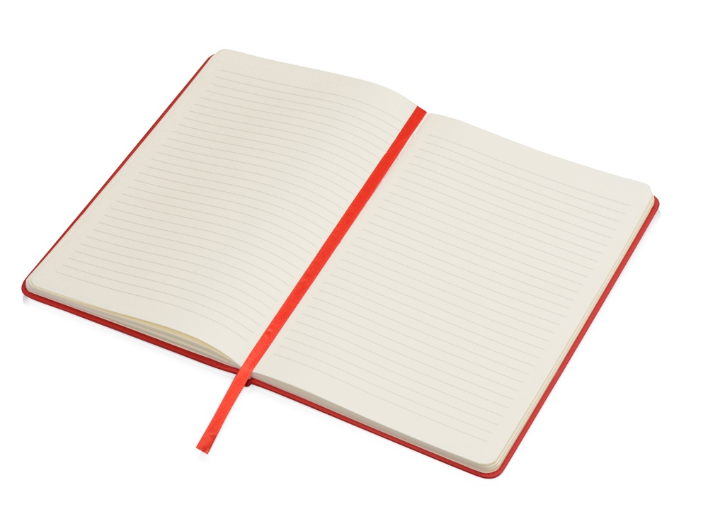 Блокнот формата А5 в твердой обложке со скруглёнными углами и блоком в линейку на 80 листов. Благодаря скрытой магнитной ленте на блокноте можно легко и надежно закрепить металлическую ручку. Зона с магнитом обозначена тиснением в форме ручки.