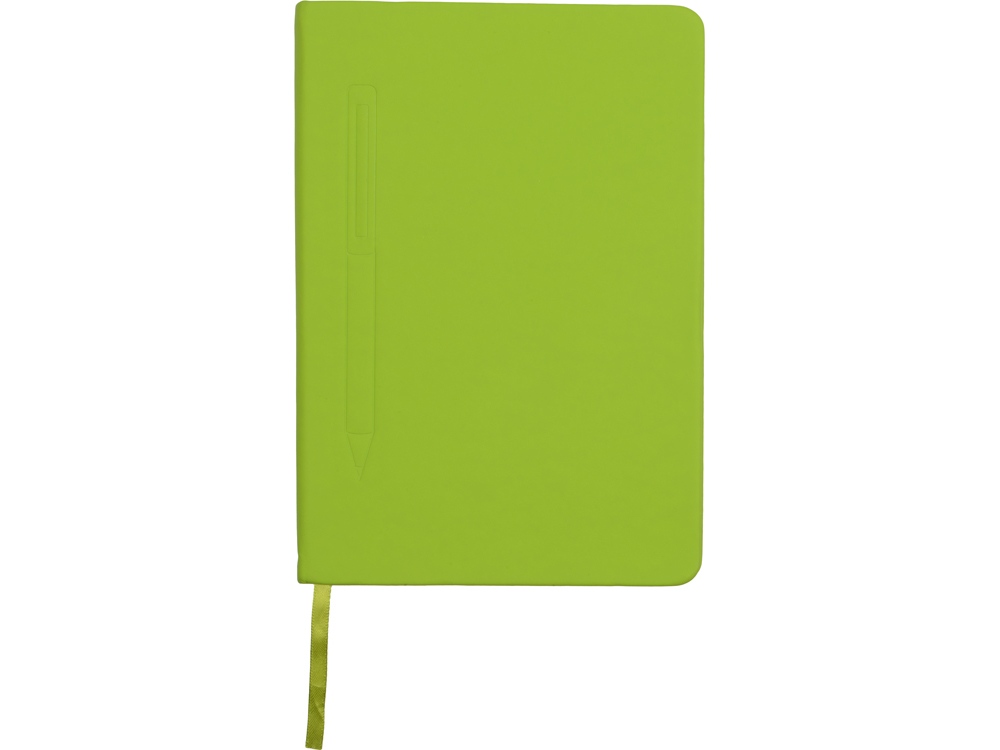 Блокнот формата А5 в твердой обложке со скруглёнными углами и блоком в линейку на 80 листов. Благодаря скрытой магнитной ленте на блокноте можно легко и надежно закрепить металлическую ручку. Зона с магнитом обозначена тиснением в форме ручки.