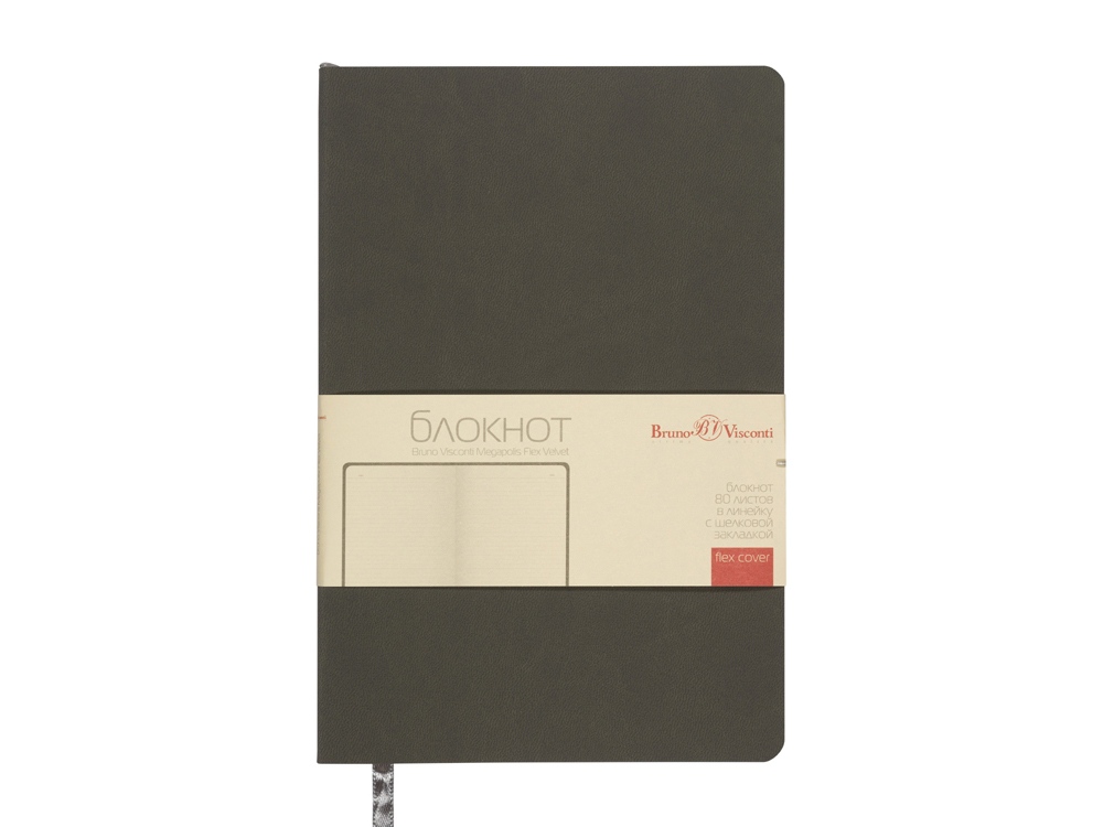 Базовая серия офисных блокнотов Megapolis Flex Velvet от Bruno Visconti формата А5 - функциональный бизнес-аксессуар для ведения рабочих и личных записей. В нем нет ничего лишнего, но, благодаря высококачественному переплетному материалу из экокожи, он выглядит презентабельно. Гибкая (flex) обложка с приятным покрытием Soft Touch, с углами закругленной формы и ляссе в цвет обложки наделяют блокнот практичностью. 80 листов блока в серую линовку помогают вести записи четко и аккуратно. Блок изготовлен из бежевой бумаги плотностью 70 г/кв.м.