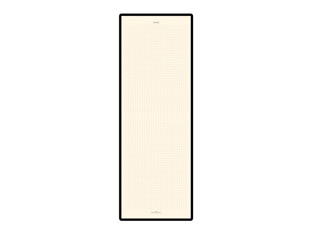 Вертикально ориентированный блокнот для записей. Линовка блока - клетка, 8 последних листов блока имеют вертикальную и горизонтальную перфорацию, которая позволяет легко отрывать листы не нарушая целостности блока. В блокноте предусмотрен нелинованный раздел для эскизов и набросков. На внутренней стороне задней обложки есть удобный карман для визиток и записок. Твердый переплет предохраняет блокнот от механических повреждений. Резинка фиксирует блокнот в закрытом виде. Блокнот подойдет для записей как в офисе, так и на выездных совещаниях. Готов к персонализации.
