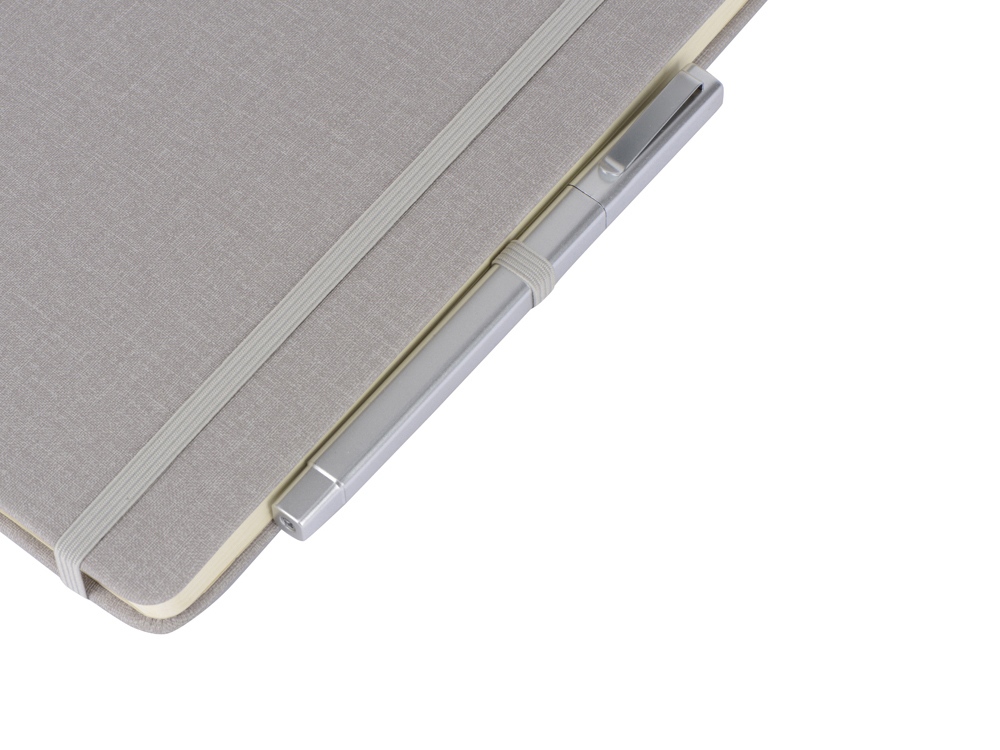 Лаконичный дизайн, приятная на ощупь твердая обложка имеет фактуру ткани. В блокноте 160 линованных страниц кремового цвета с плотностью 80 г/м2, петля для ручки, лента-закладка и удобный карман для карточек и записок.