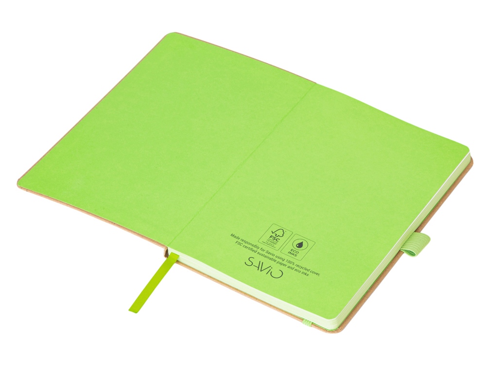 Твёрдая обложка блокнота выполнена из крафта - экологичного материала, который станет отличной основой под нанесение логотипа или принта. Блокнот имеет яркие акценты в виде ляссе, петли для ручки, резинки, срезов и форзацев. Бумажный блок на 80 листов выполнен из бумаги, полученной из древесины из специальных восполняемых лесных ресурсов, имеет сертификат FSC, международной некоммерческой организации лесного попечительского совета. Линовка - выполнена специальными экочернилами, при изготовлении которых используется меньшее количество энергии. - формат А5; - изготовлен с заботой о природе; - универсальный дизайн под любое нанесение.