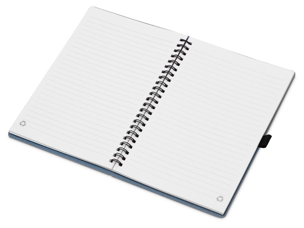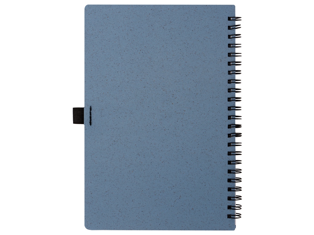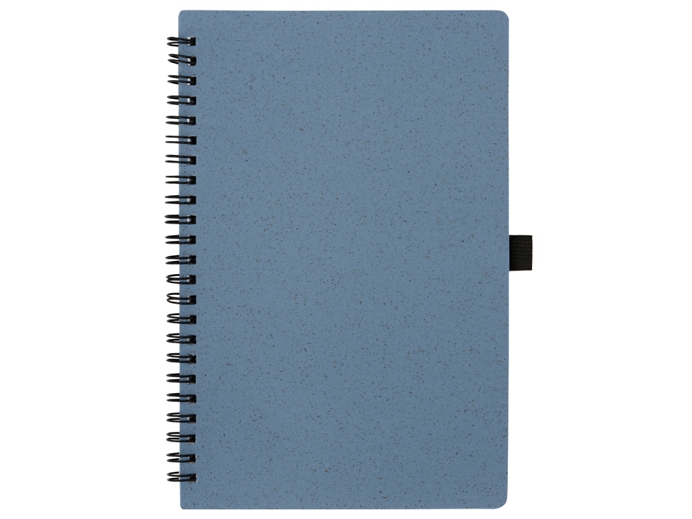 Блокнот с обложкой из переработанной пшеницы и пластика. Блок состоит из 70 листов переработанной бумаги белого цвета. Крепление - пружина. Дополнен петлей для ручки.