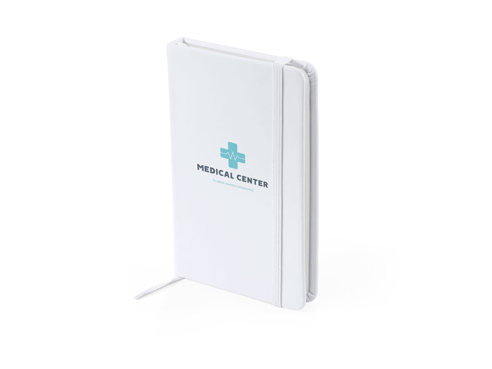 Блокнот с антибактериальным покрытием формата А6 на 80 простых листов (70 г/м²). Закладка и резинка в тон.