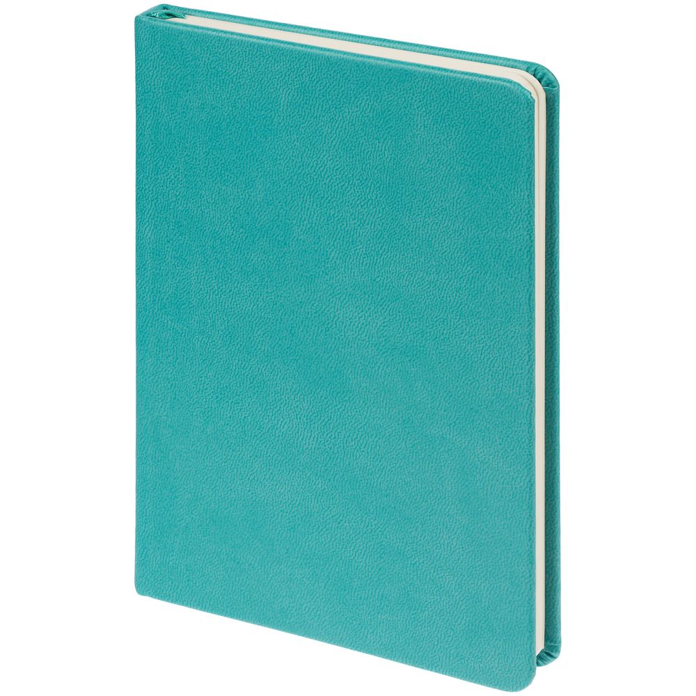 Твердая обложка из материала Latte, бирюзовый, ляссе в цвет обложки.