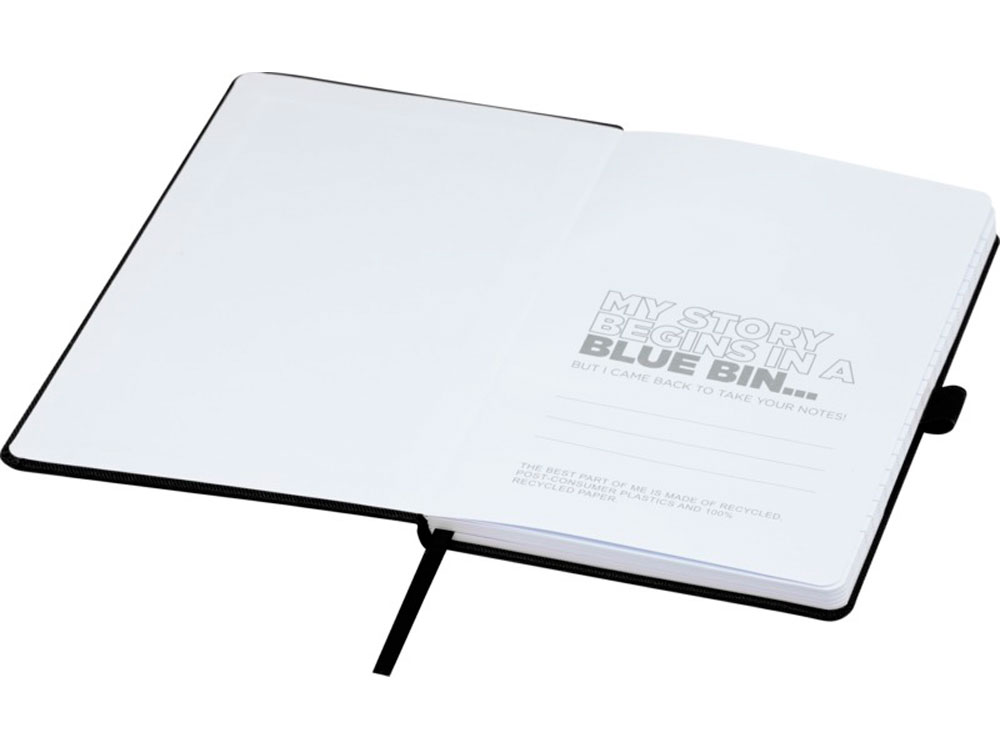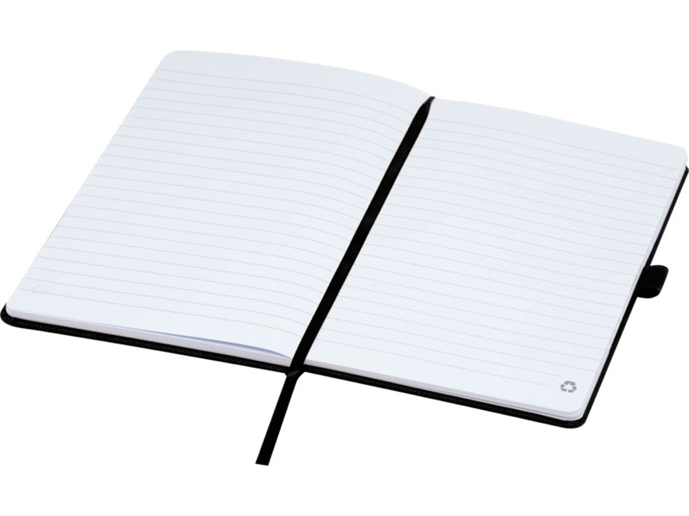 Блокнот формата А5 с обложкой из переработанного ПЭТ. Содержит 80 листов в линию плотностью 70 г/м², изготовленных из переработанной бумаги, с петлей для ручки и лентой-закладкой. Может быть дополнен шариковой ручкой Honua 107757 из переработанного ПЭТ. Переработанный PET пластик.