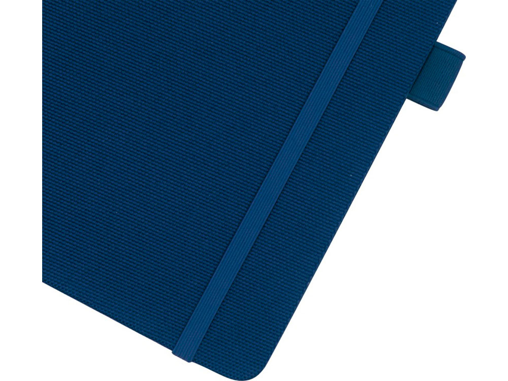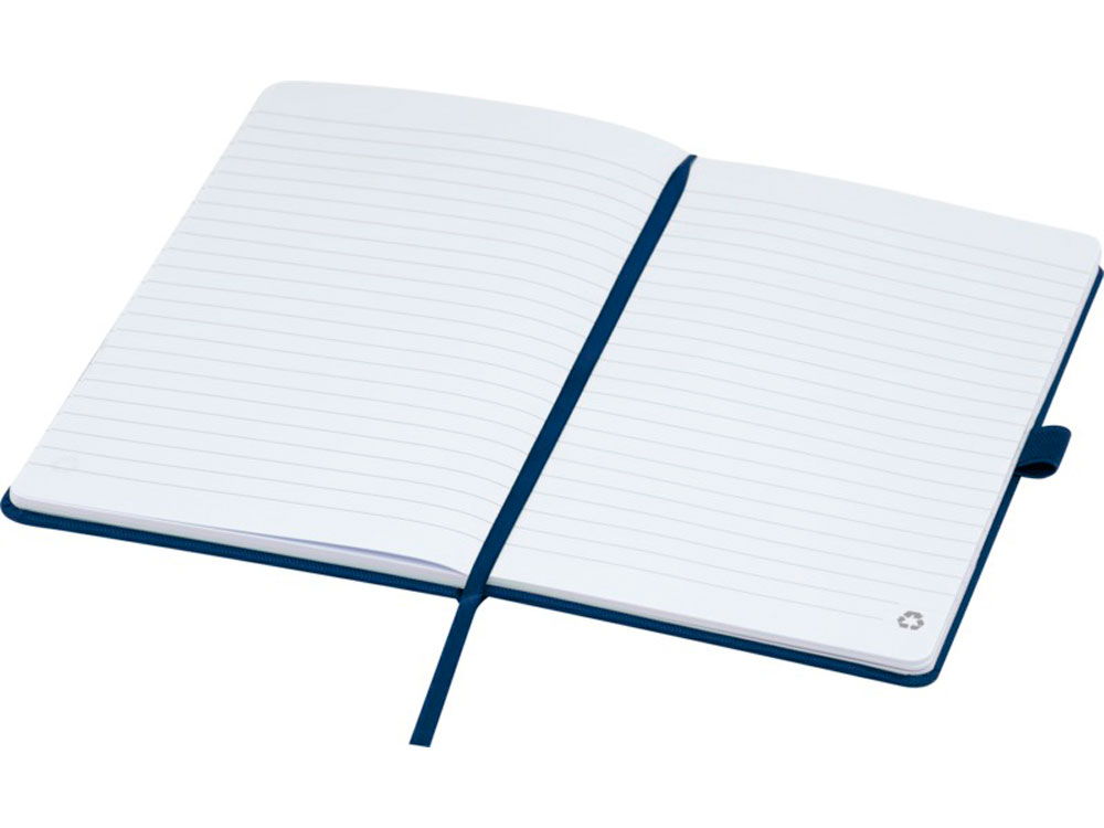 Блокнот формата А5 с обложкой из переработанного ПЭТ. Содержит 80 листов в линию плотностью 70 г/м², изготовленных из переработанной бумаги, с петлей для ручки и лентой-закладкой. Может быть дополнен шариковой ручкой Honua 107757 из переработанного ПЭТ. Переработанный PET пластик.