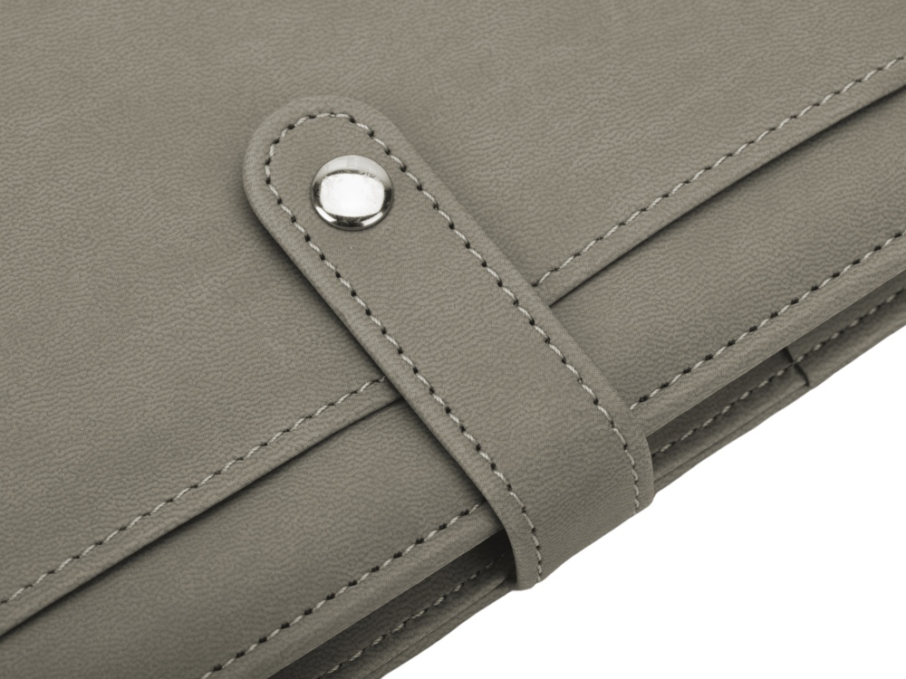 Отличный мерч для тех, кто любит функциональные подарки. Блокнот-портфолио имеет 5 карманов: 1 на внешней стороне обложки и 4 кармана внутри, которые можно использовать для пропуска, записок, визиток. Внутри есть сменный блокнот на 64 листа. В него вы можете записывать планы на день или делать пометки о расходах сразу после оплаты. Компактный размер А6 позволит удобно носить с собой блокнот, размещая его даже в кармане. - петля для крепления ручки; - блокнот со сменным блоком; - закрывается на кнопку; - белая бумага плотностью 70 г/м2. Внимание, ручка в комплект не входит!