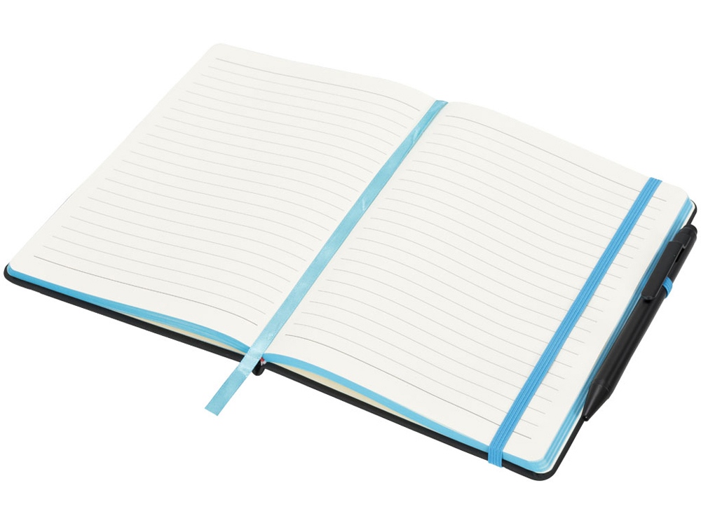 Блокнот Noir Edge среднего размера. Современный и стильный черный блокнот с мягкой на ощупь обложкой. Цветной край и цветные маркеры страниц, застежка-держатель для ручки. Предлагается с черной шариковой ручкой-стилусом. Блокнот содержит 96 листов линованной бумаги (70 г/м²) кремового цвета. ПУ.