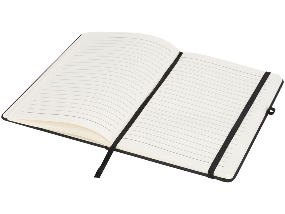 Блокнот Noir среднего размера. Блокнот Noir с мягкой на ощупь черной ПУ обложкой. В каждом блокноте есть цветная застежка, держатель для ручки и лента-закладка. Блокнот содержит 96 листов линованной бумаги (70 г/м²) кремового цвета. ПУ.