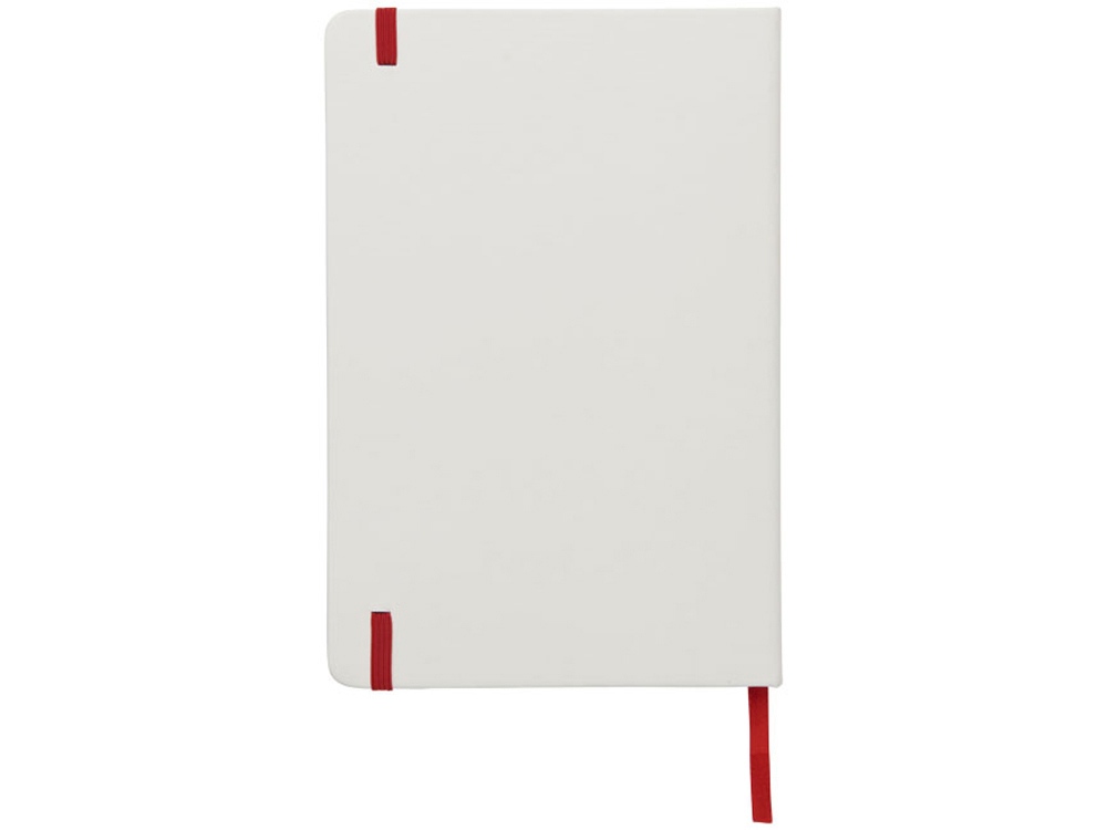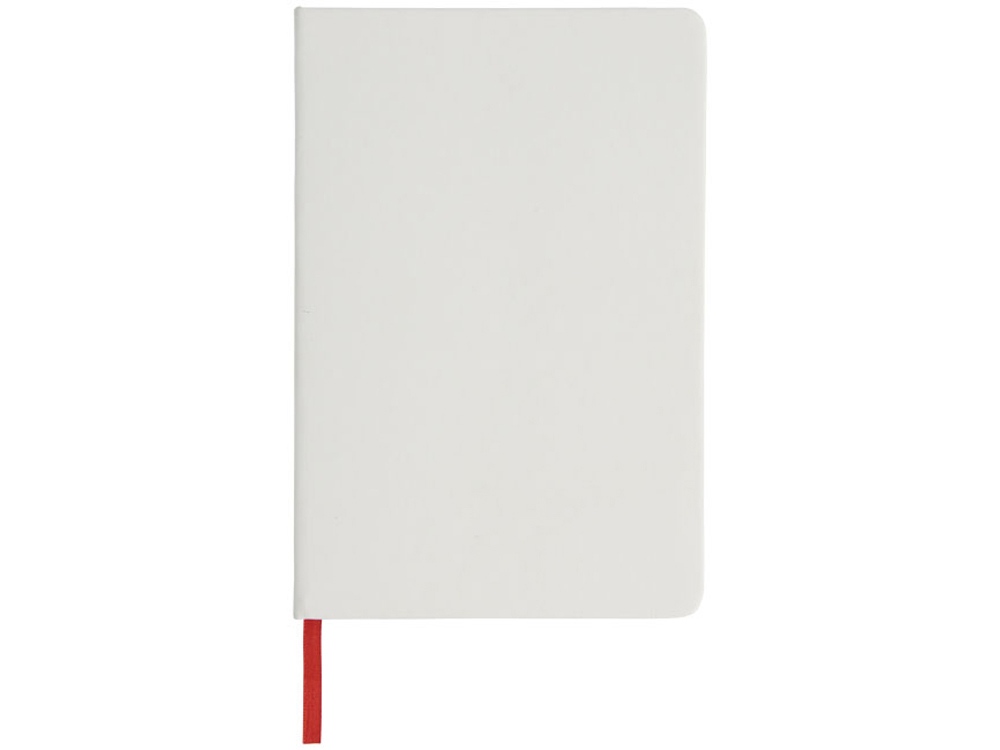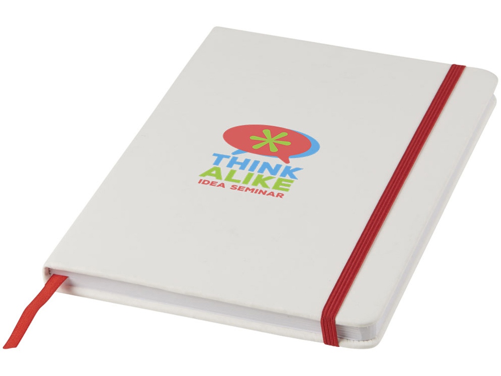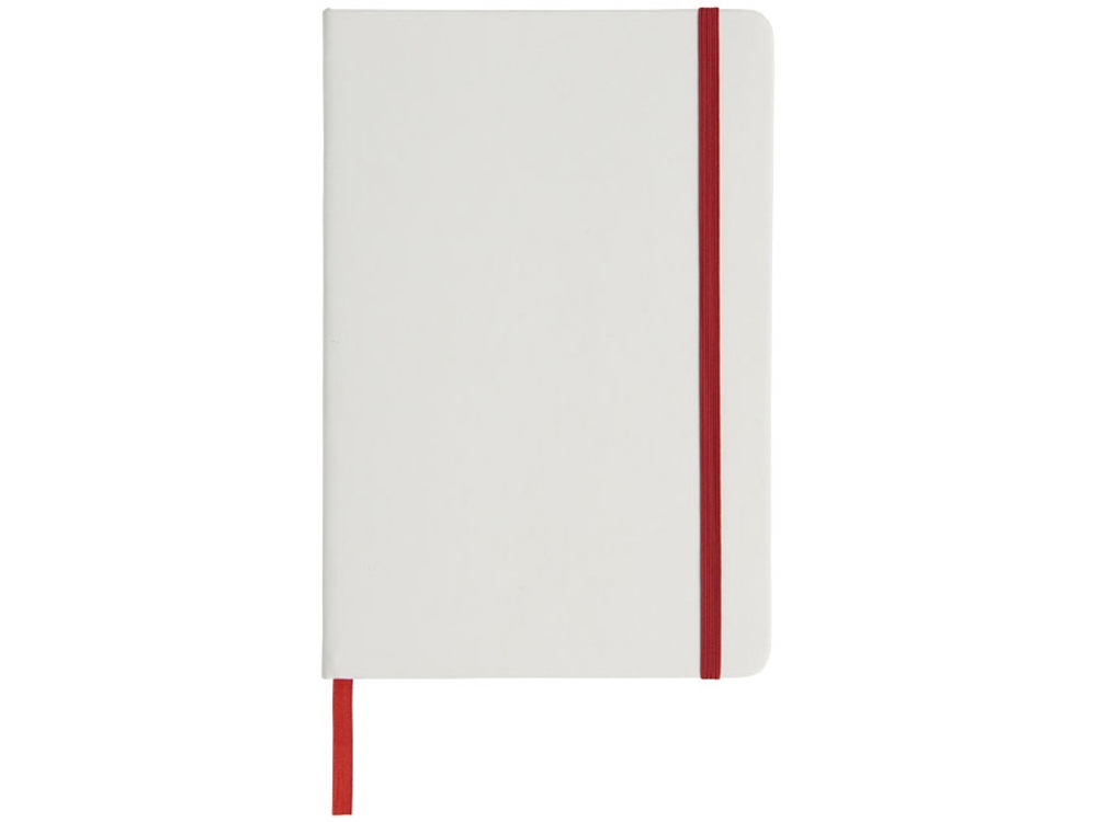 Белый блокнот A5 с цветной эластичной закладкой и резинкой. 96 страниц (60g/m2), линованная бумага. На обложке возможна цифровая печать.