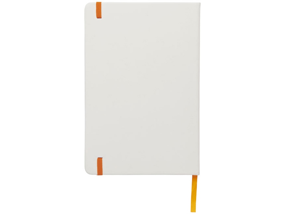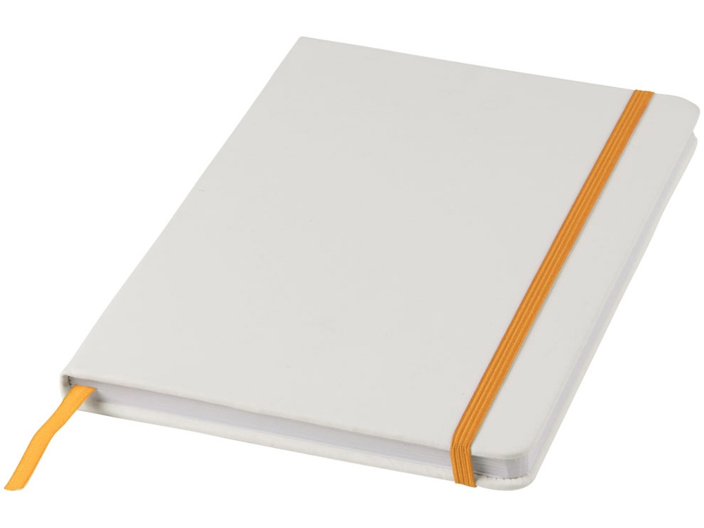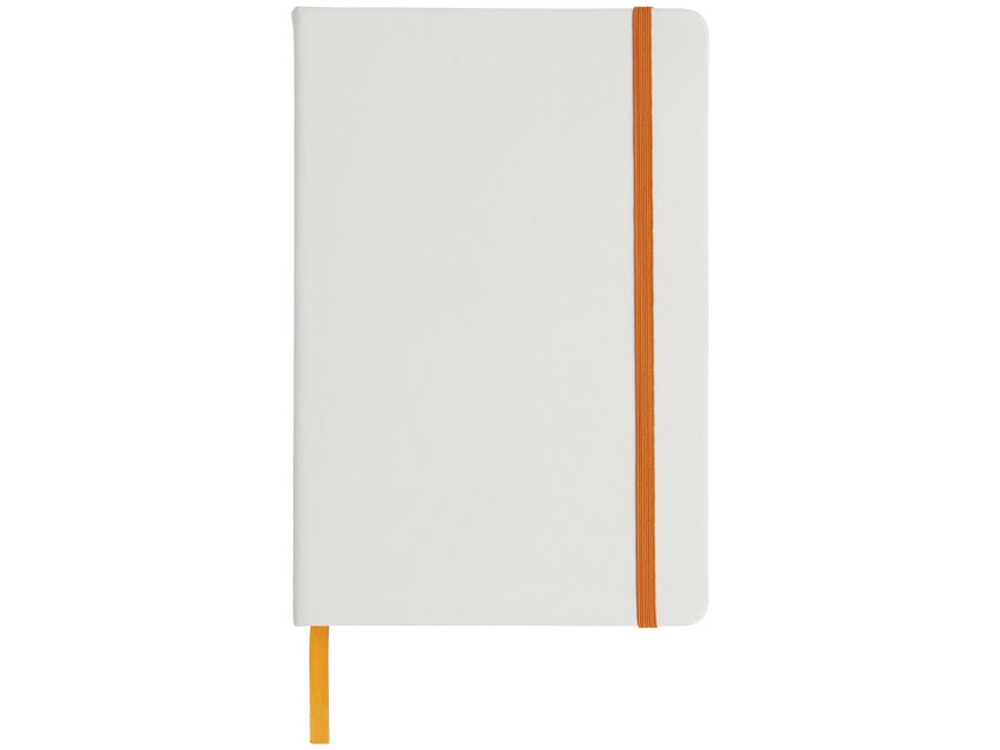 Белый блокнот A5 с цветной эластичной закладкой и резинкой. 96 страниц (60g/m2), линованная бумага. На обложке возможна цифровая печать.