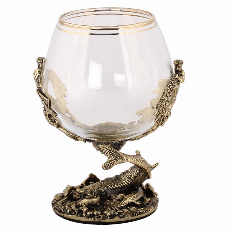 • Бокал украшен фигурами рыбака и рыбы бронзового цвета
