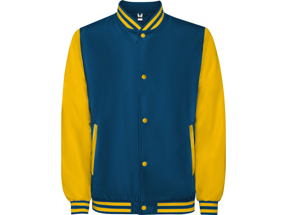 Утепленный бомбер колорблок из двух цветов. Воротник, манжеты и низ из риба 1х1 с двумя контрастными полосами. Боковые карманы закрываются на молнию. Контрастный кнопки.