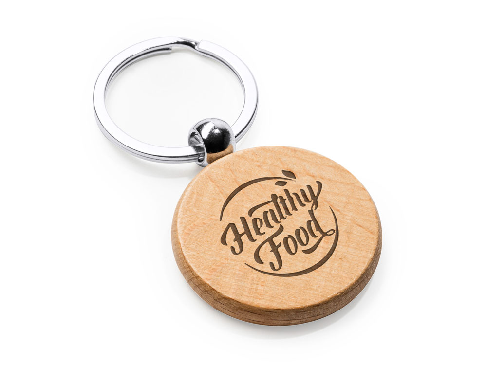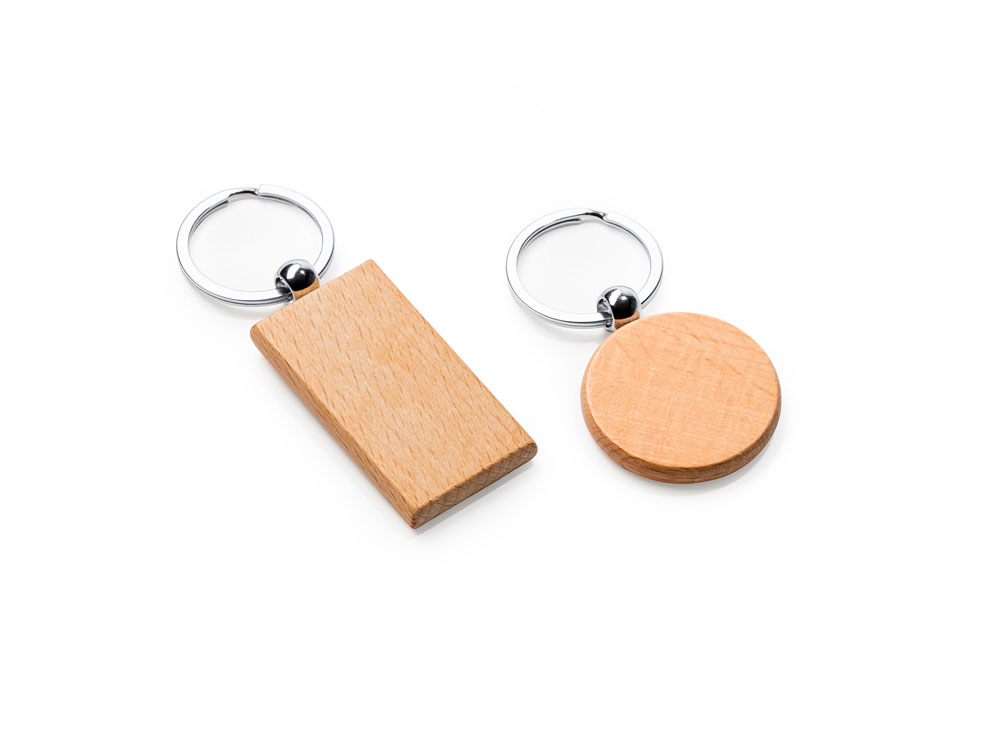 Брелок из натурального дерева с металлическим кольцом.