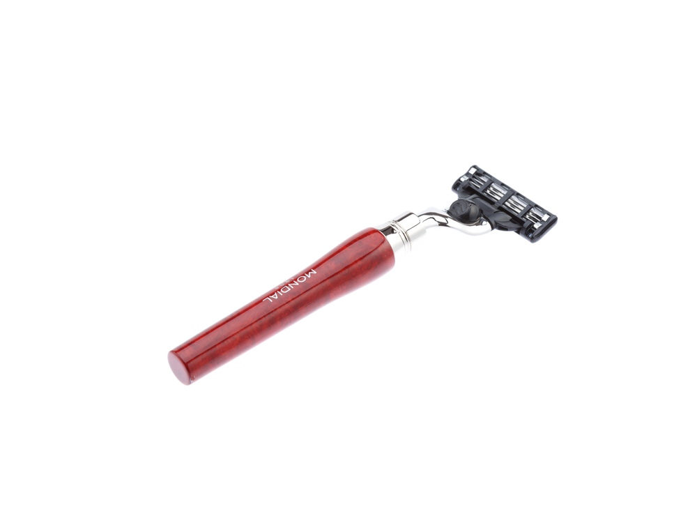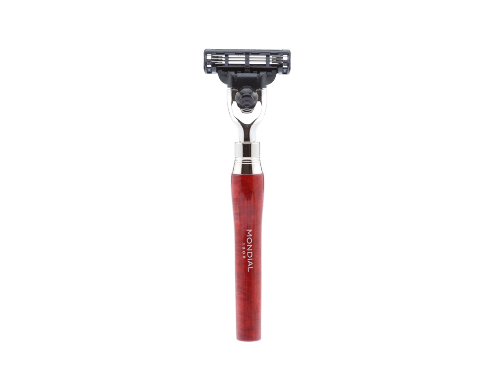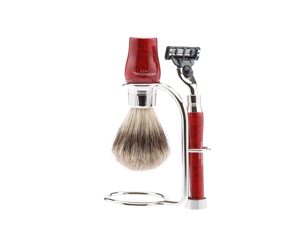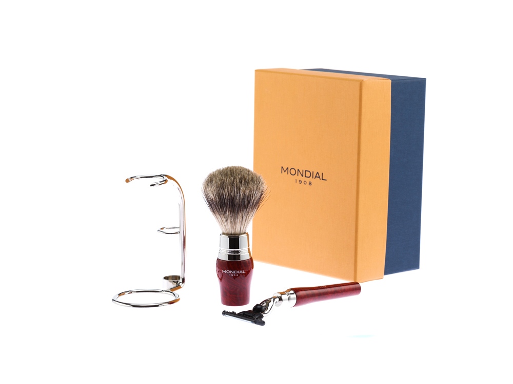 Ассортимент бритвенных аксессуаров MONDIAL является эталоном для всех видов бритья. Только лучшие материалы обретают форму в опытных руках итальянских мастеров. Бритвенный набор из лимитированной коллекции MONDIAL разработан лучшими итальянскими дизайнерами. В наборе идеально сочетаются искусно обработанная древесина корня шиповника и великолепный ворс барсука. Минималистичный, но элегантный дизайн бритвенного набора – уникальный в своем роде современный элемент роскоши, это возможность выйти за рамки моды для создания аутентичного итальянского стиля вне времени. Бритвенный набор MONDIAL • бритвенный станок, совместимый с кассетами Gillette MACH3 (одна кассета в комплекте); • помазок с барсучьим ворсом категории Best Badger, диаметр узла - 20 мм (размер M); • подставка из никелированной латуни Помазок Тип ворса: Натуральный барсучий ворс категории Best Badger Диаметр узла: 20 мм (размер M) Материал рукояти: корень шиповника, никелированная латунь Размеры: высота помазка - 118 мм, высота рукояти - 60 мм, диаметр основания - 32 мм Вес: 80 гр. Станок Тип лезвия: Gillette MACH3 Материал рукояти: корень шиповника, никелированная латунь Размеры: высота станка с лезвием - 137 мм Вес: 35 гр. Подставка подставка для бритвенного станка и помазка изготовлена из никелированной латуни