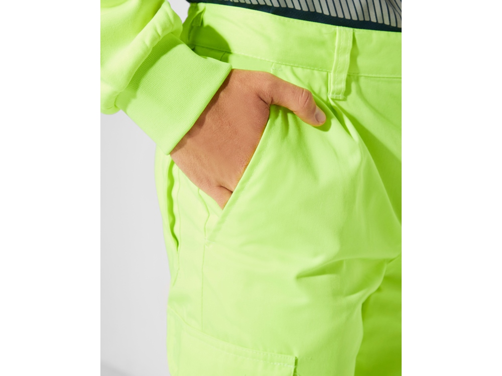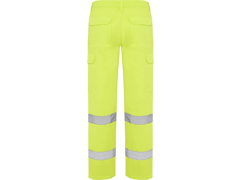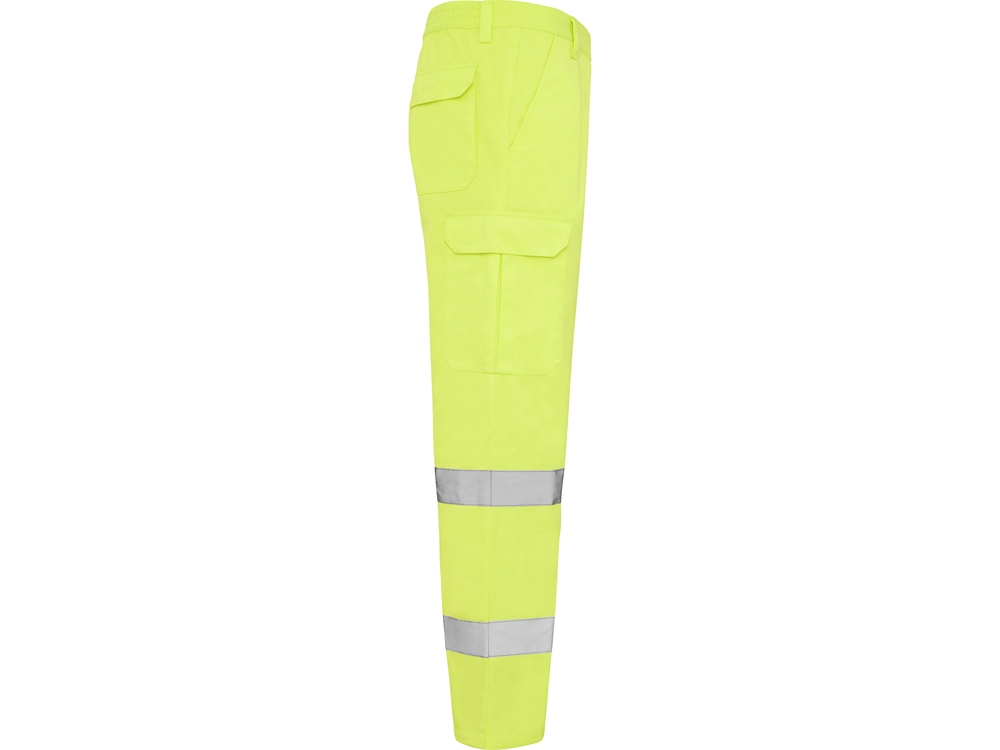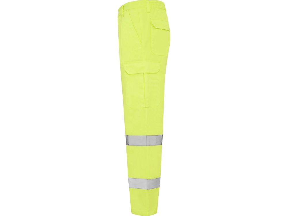 Брюки неоново-желтого цвета. · Регулируемый эластичный пояс сзади. · Два кармана спереди. · Функциональный карман сзади с клапаном на липучке. · Два боковых объемных карманы с клапаном на липучке. · Две горизонтальные светоотражающие полосы.